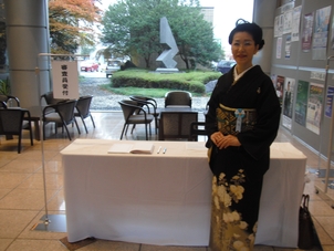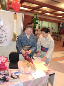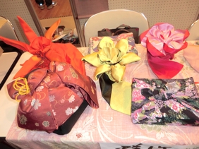 我がブースでは、風呂敷の結び、帯の花結びなどを展示!