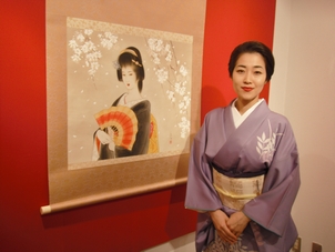 相変わらず、綺麗!絵も字も着物も素敵!(柴田悦子画廊にて)